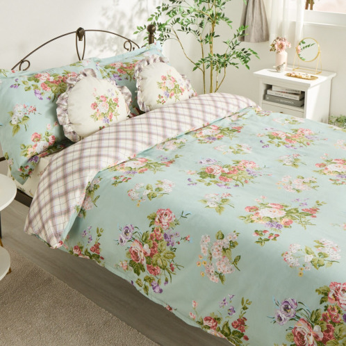 表側は綿100%のキャンバス素材に美しい花柄をプリントし、さらに刺しゅうをほどこすことで立体感を表現。