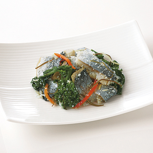 脂ののったにしんを食べやすく甘酢漬けにし、菜の花、人参、ししゃも卵を加えて彩り良く仕上げた逸品。