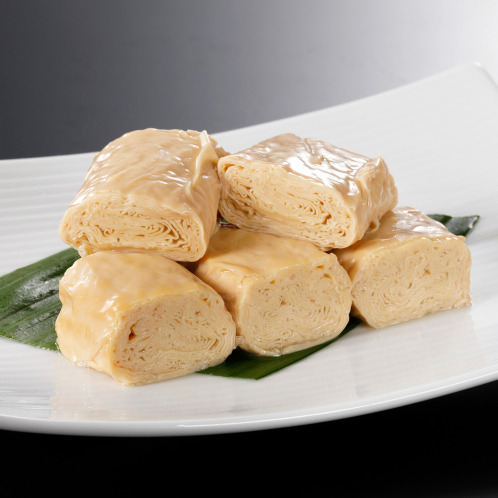使用している卵のうち、烏骨鶏の卵を50%贅沢に使用した黄金色の伊達巻です。