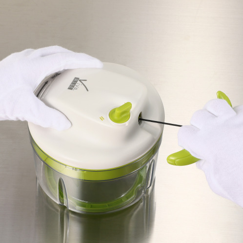 この多機能フードチョッパーは、ハンドルを引くだけの簡単操作でさまざまな食材をみじん切りにできます。