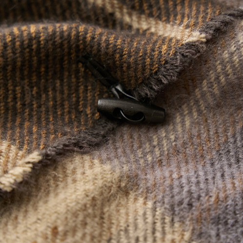 留め具には小さめのトグルボタンを採用し、着用時のズレを防止しながら冬らしい表情を演出。