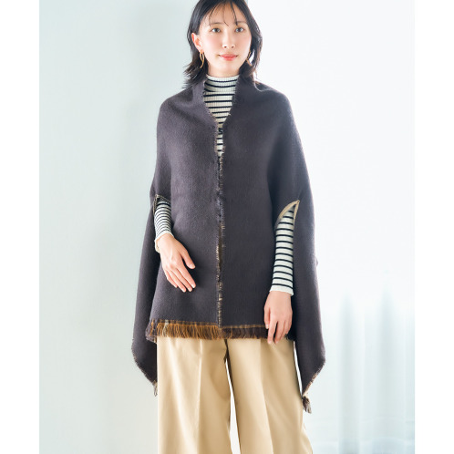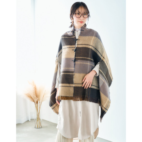 パチッ!と対策 3WAY リバーシブル ケープストール ブラウンチェック