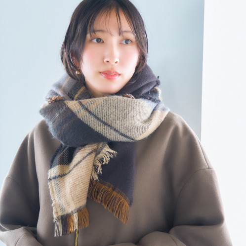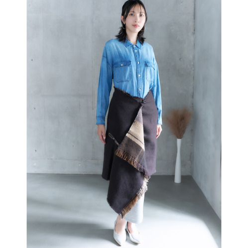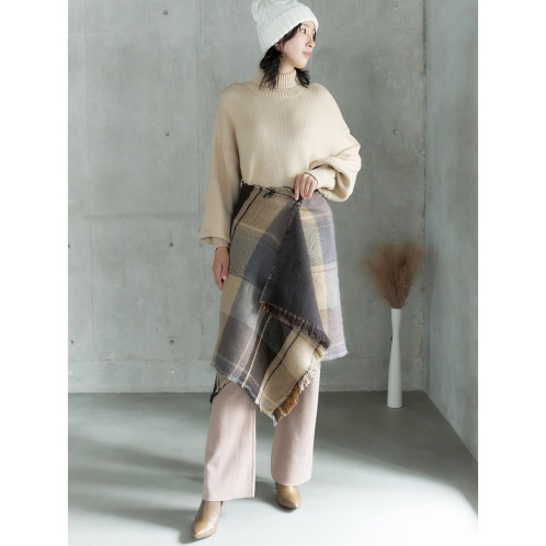 ストールとしてざっくり巻けばボリューム感があり、腰に巻けば冷えやすい下半身もすっぽりと包み込みます。