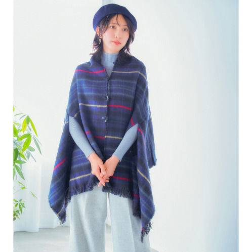 朝夕の冷え込む季節に、ケープ、ストール、巻きスカートと3通りの使い方ができる便利なアイテムです。