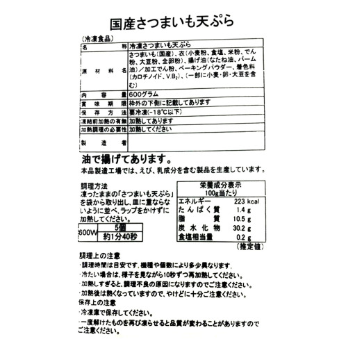 <国産さつまいもの天ぷら>