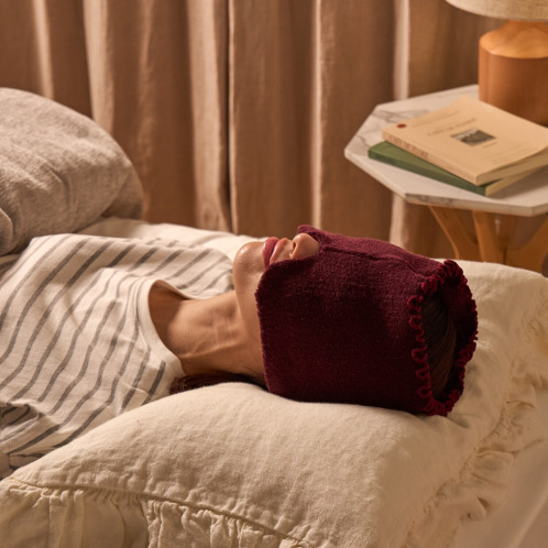 肌面はパイル編みになっており、構造特性上、顔の熱を逃がしにくく、外からの冷えを防ぎます。
