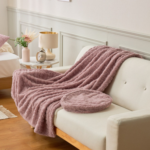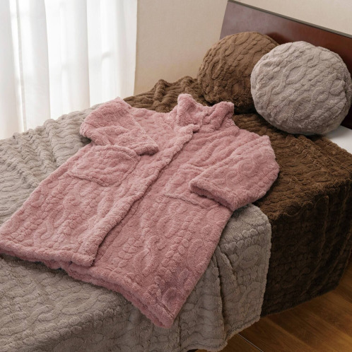 ケーブルニット調のデザインを毛足の短長で表現することで、ふっくらとした風合いと軽やかな掛け心地に仕上げました。