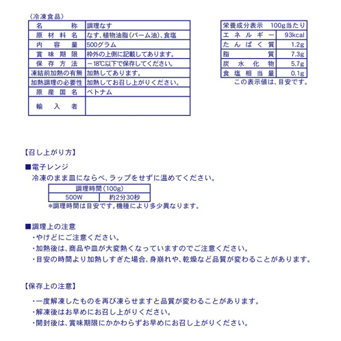 なすの美しい翡翠色を見事に活かし、冷凍ながらきれいな焼き目をつけるなど、見た目にもこだわった逸品です。