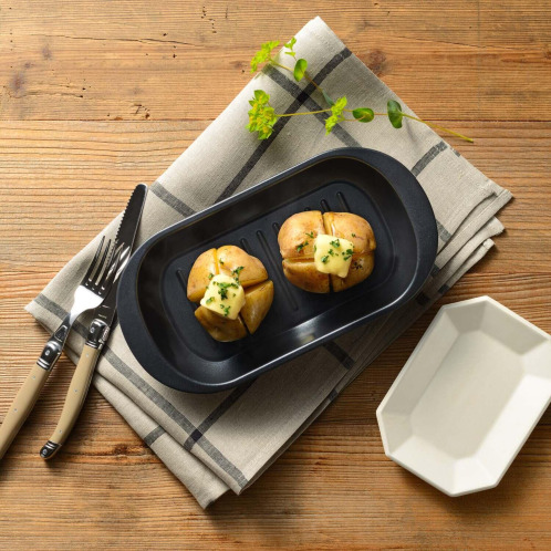 長い食材も入る形状だから、焼きいもや焼きとうもろこしなどの調理も手軽に。
