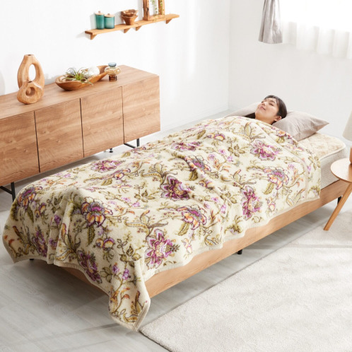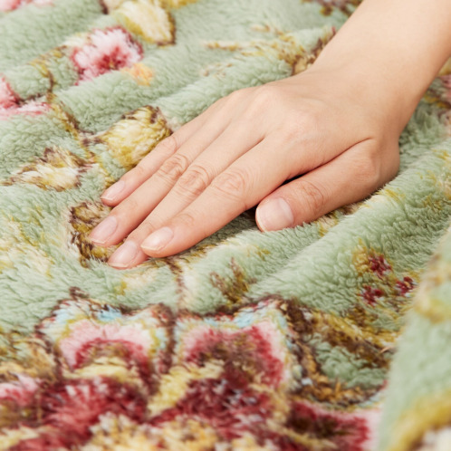 毛布は、西洋の華やかさとインドのオリエンタルな要素が醸しあって作り出す、エキゾチックで上品な雰囲気が人気の西洋更紗柄をトレンドカラーを使用し、クラシックな中に新しさを感じていただけるように工夫して仕上げました。