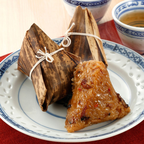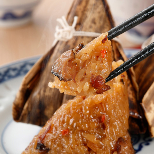 自社で試行錯誤して作り上げた自家製のタレで鶏肉、しいたけ、たけのこ、にんじんなどの具材を煮込み、蒸した国産もち米に混ぜ込み、一つ一つ手包みで仕上げたこだわりのちまきです。