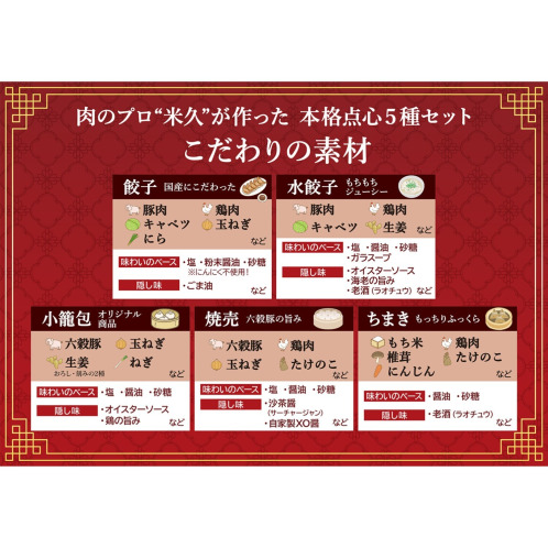 肉のプロ集団<米久> が本気で作った本格点心5種セットのご紹介です。