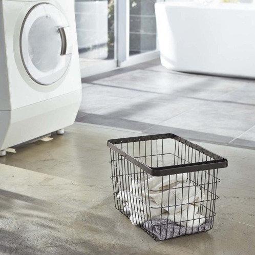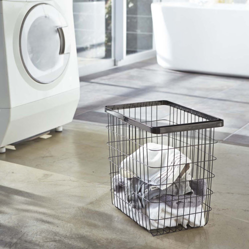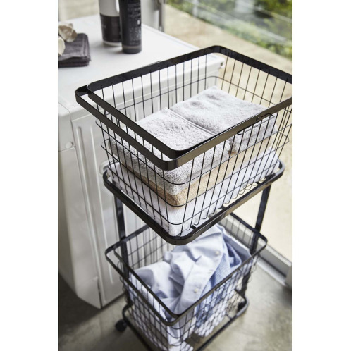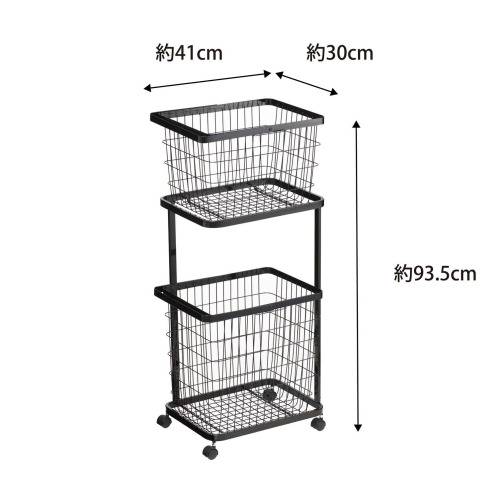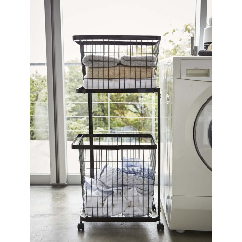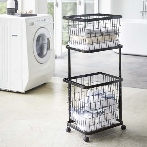 ワイヤーバスケットを2台収納できる二段式設計で、洗濯物の仕分けにも便利。