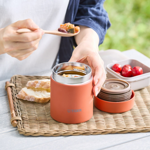 ステンレス製の真空二重構造により高い保温・保冷効力があるので、スープや料理は温かい状態で、デザートは冷たい状態で持ち運べます。