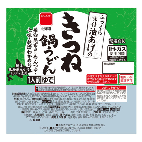 北海道産小麦使用! ふっくら味付油あげの きつね鍋うどん(常温)