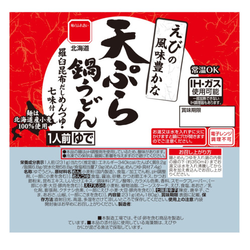 北海道産小麦使用! えびの風味豊かな 天ぷら鍋うどん(常温)