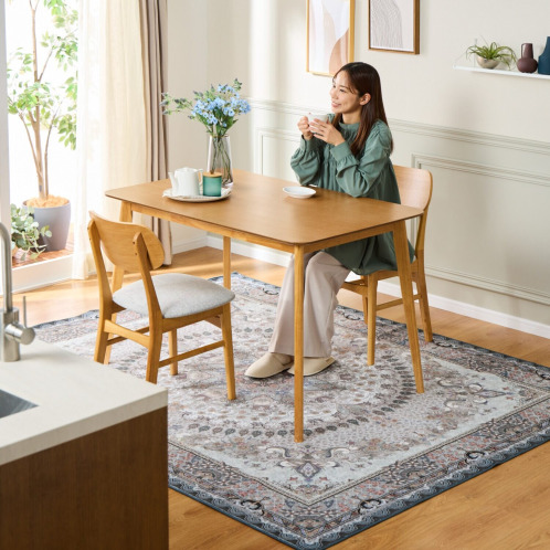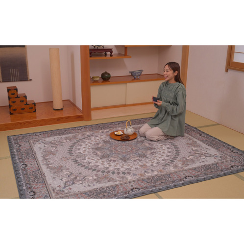 シルク手織り絨毯のような繊細なデザインを昇華転写という注目のデジタル技術で再現したカーペットです。