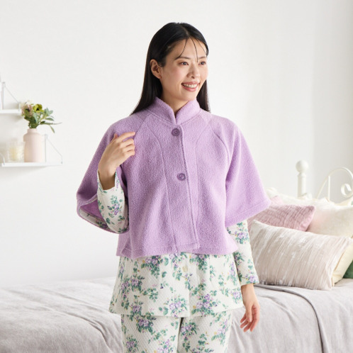 ローラアシュレイ ボアフリース 6分袖ボレロ パープル