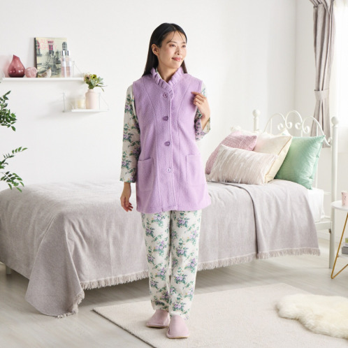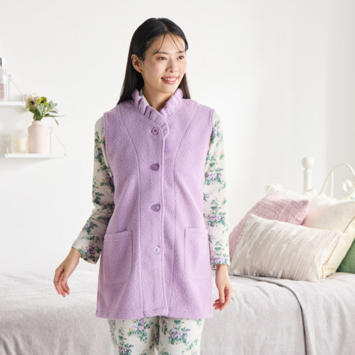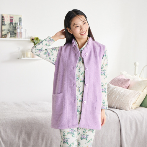 <ローラアシュレイ>より、表面がくるくる、もこもこしているボアフリース素材を使用したジレのご紹介です。