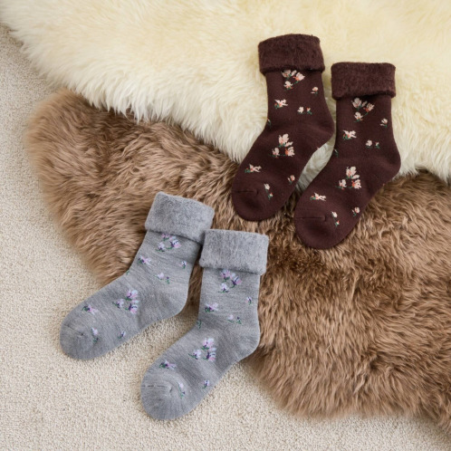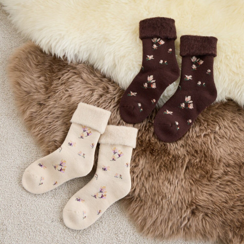 ローラアシュレイ マグノリアグローブ柄 ルームソックス レディース2色セット ブラウンホワイト