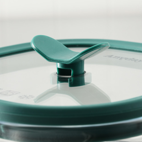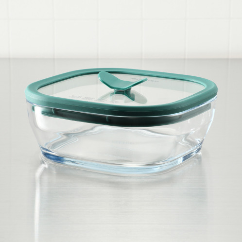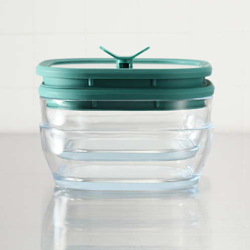 この容器の最大の特長は、ガラス蓋についたシリコーン製のバルブ。