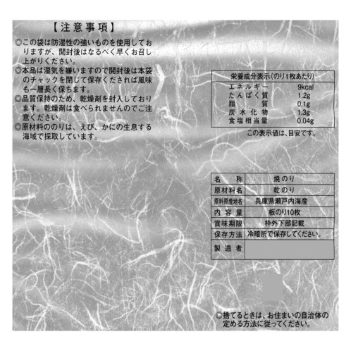 ■コンタミネーション注意喚起表示:原材料ののりは、えび、かにの生息する海域で採取しています。