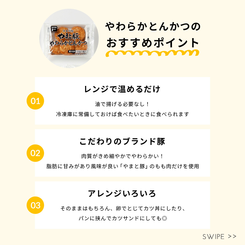 プロからも指名買いされるほどの味わいの豚を、部位をもも肉に限定し、ご家庭で簡単に電子レンジで調理できるよう仕上げたとんかつです。
