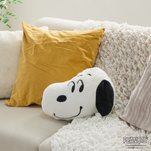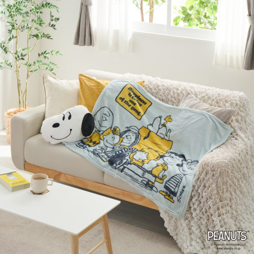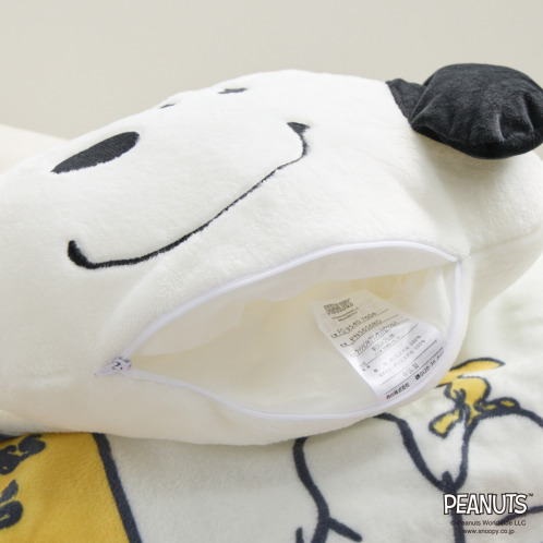 専用のクッションケースに入れることでかわいいスヌーピークッションに!1枚あると大変便利なクッションインブランケットです。