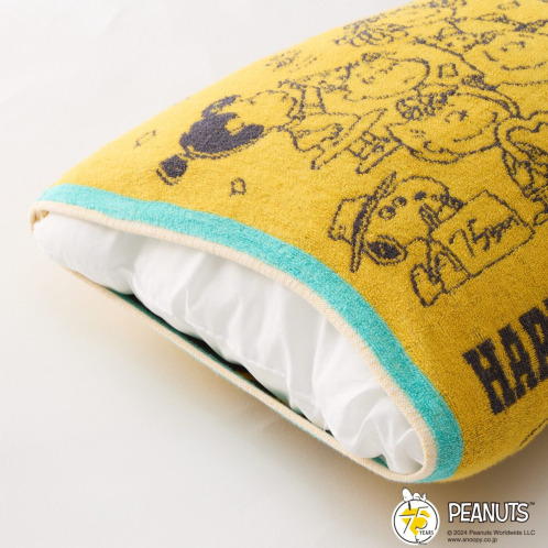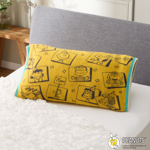 PEANUTS75周年 スヌーピー のびのび タオルピローケース 2色組 イエローxグリーン