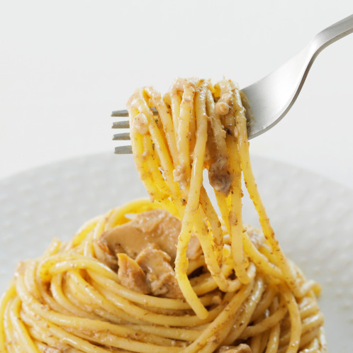 パスタは、お店でも使っている、本場イタリアのブランド“バリラ社”のイタリア産デュラム小麦のセモリナを使ったパスタを使用。