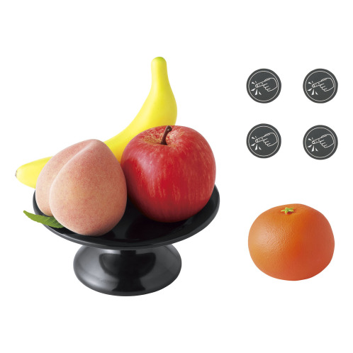 リアルな質感を再現したバナナ、ミカン、モモ、リンゴの4種類が含まれており、それぞれの果物の特徴が細部まで表現されています。