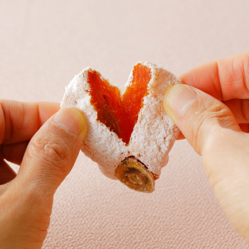 食感はしっとり、もっちりとしており、柿の味わいを凝縮したような甘みが楽しめます。