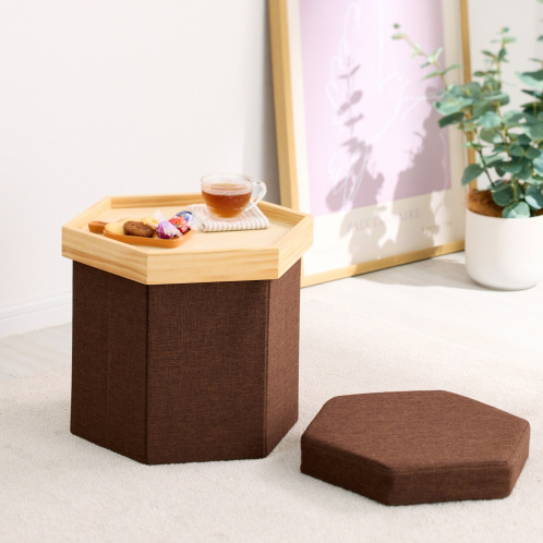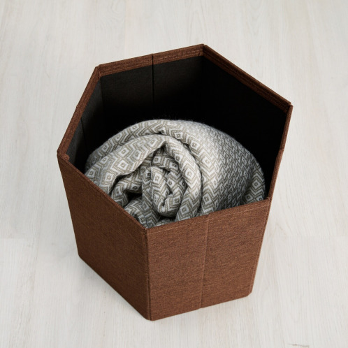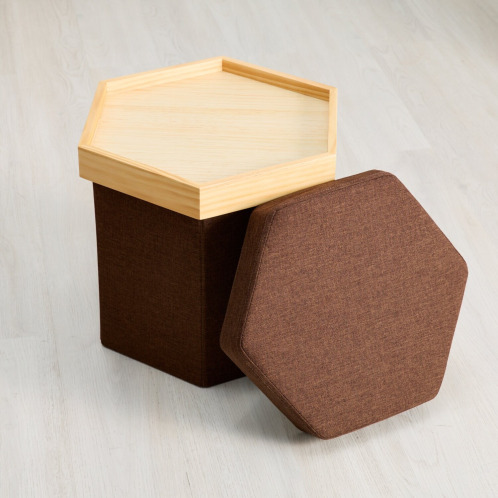 1台3役! 収納できる北欧風スツール <六角形> モカブラウン