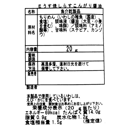 国産のしらすを使ったちりめんじゃこを専用の機械でプレスし、香ばしい醤油味で仕上げた「うす焼きしらす こんがり醤油」のご紹介です。