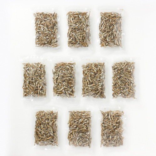 瀬戸内海で獲れた片口いわしの煮干しをうす味に味付けし、金ごまを多めにふりかけました。