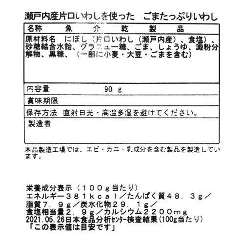 瀬戸内産の片口いわしを使用した「ごまたっぷりいわし」のご紹介です。