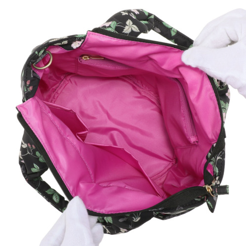 マチをしっかり取っているため、お財布やスマートフォン、タオル、ペットボトルなどたっぷりと収納できます。また内側にはポケットを多数配しているのでちらかりがちなバッグの中身も整理して収納することができます。開口部はファスナー式で、中身が見えないつくり。外側にはファスナーポケットがあり、すぐに取り出したい小物などを入れておくと便利です。