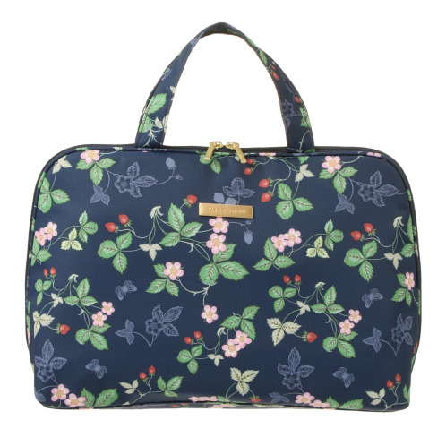 <ウェッジウッド>の注目のデザインをプリントで表現した、ドレッサーポーチ。増えてしまいがちなコスメ用品などをたっぷりと収納できます。ダブルファスナー仕様なので開口部が大きく開き、物の出し入れがしやすくなっています。底のマチもしっかりと取っているため見た目以上に収納力があり、かさばるボトルなどを持ち運ぶのに便利です。内側はクリアー素材でできたオープンポケットとメッシュポケットを設けており、整理収納しやすすいうえ、小物も見つけやすくなっています。ハンドル付きなのでミニバッグとしてもお使いいただけます。表地には、はっ水加工をほどこしているのでお手入れしやすいのもうれしいポイント。