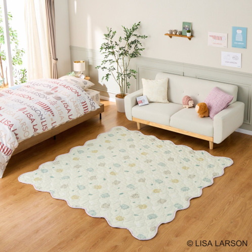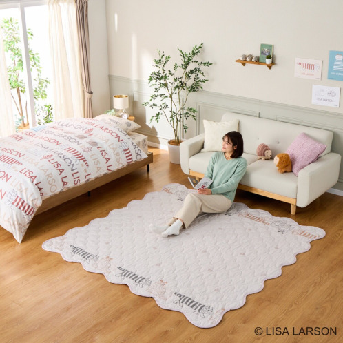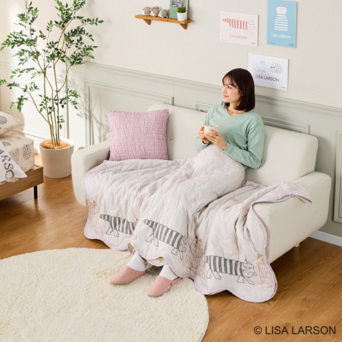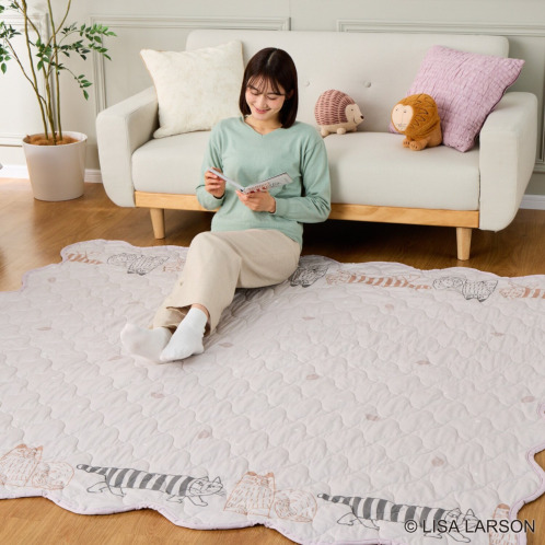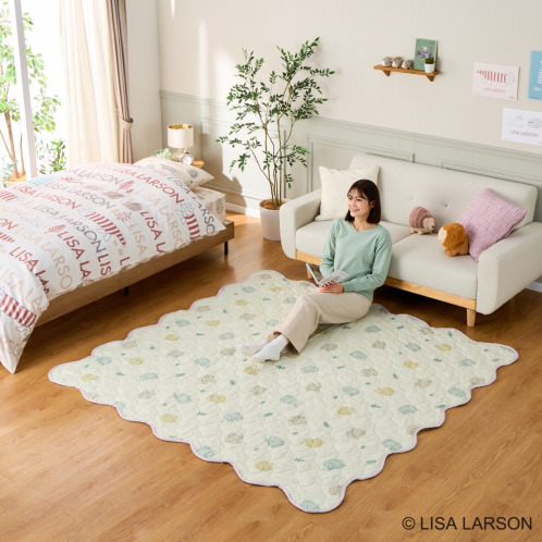 スウェーデンを代表する陶芸家、デザイナーの“リサ・ラーソン”コラボレーションデザインが目をひく、マルチキルトカバーです。ラグ、ソファーカバー、寝具のアクセントカバー、大判のブランケットとしてなど多彩に活躍する優れもの。表側は上質なコットン100%生地、裏側は肌触りの良いピーチスキン加工をほどこしたポリエステル生地を使用しています。表裏で、素材もデザインも異なるリバーシブル仕様なので、その日の気分で使い分けてお楽しみいただけます。中わた入りなのでふんわりとした使い心地もうれしいポイント。洗濯機で丸洗い(ネット使用)できるので、清潔に使えます。