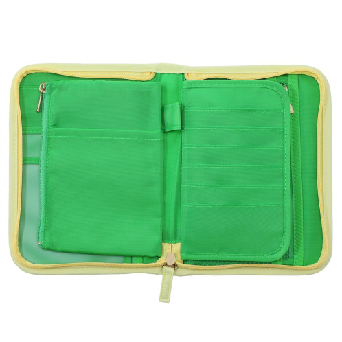 <ウェッジウッド>の注目のデザインをプリントで表現した、はっ水お薬手帳マルチケースです。外側にはっ水加工をほどこしており、水を弾くので安心感があります(雨の中長時間使用した場合、雨が浸透したり縫い目から水が漏れることがあります)。ポケットとカード収納を豊富に配した整理整頓しやすいつくりで、お薬手帳や診察券、カードなど、病院関係のものを一つにまとめられて便利。持ち歩き用としてはもちろん、自宅での貴重品管理にも役立ちそう。旅行時のチケット収納やパスポートケースとしてもおすすめです。前面にあしらったゴールドカラーのブランドプレートがさりげないアクセントに。