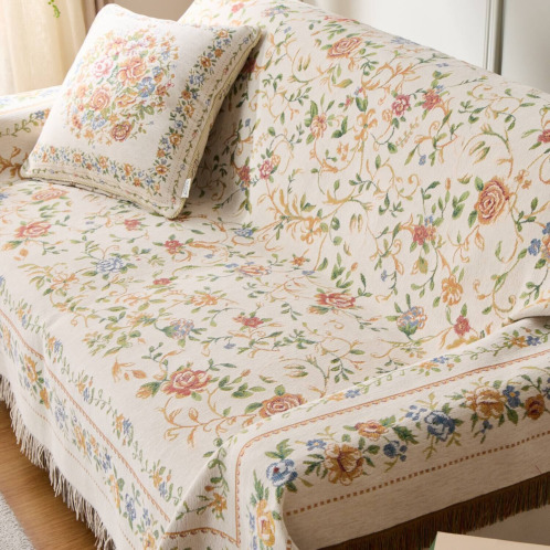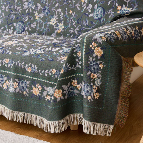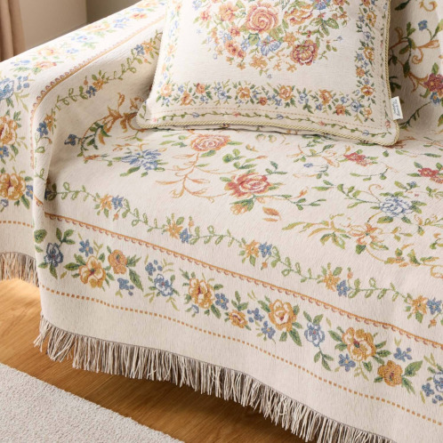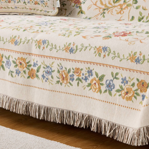 18世紀フランスに起源を持つ、シェニールゴブラン織の技法を用いてお作りしたマルチカバー。ベルベットのように柔らかくふさふさした手触りが特徴で、光の当たり方や角度によって色の濃淡が変化し、豊かな表情をお楽しみいただけます。和室にも洋室にもなじむ、チャーミングで上品なデザインに仕上げています。四隅はフリンジで囲んだ、エレガントな欧米風の仕立て。ソファーやベッドにサッとかけるだけで、あっという間にお部屋が春色に。はっ水加工をほどこしているので、お手入れも簡単。汚れた場合はご家庭の洗濯機で洗えます。実用性と美しさを兼ね備えた優秀な一品です。