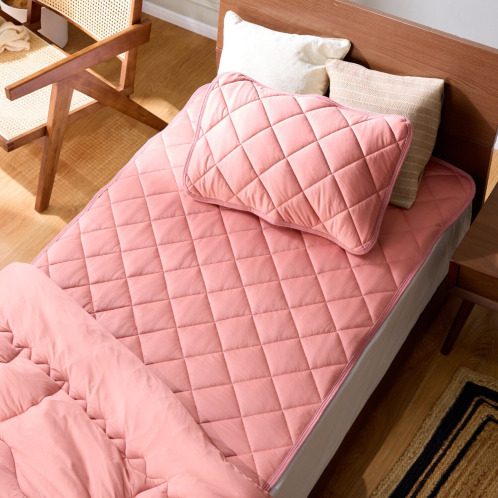 暑い時期にも寒い時期にも快適な使い心地を目指した、サーモアジャストII敷きパッド。快適さの秘密は、スーパー調温素材“サーモアジャスト”。全体的に温度調整力が発揮できるよう側地と詰め物に使用しています。詰め物の下層には吸放湿性と消臭(アンモニア、酢酸)機能のある“モイストキャッチャー”を使用し、気になる湿気やニオイ対策にも配慮。詰め物の上層には“テイジン”の防ダニ&抗菌防臭わた“マイティトップII”を使用。側地表側は極細のマイクロファイバーを使い、微起毛加工をほどこすことにより、とろとろとした贅沢な掛け心地、裏側はコットン混のパイルを使用し、吸湿性がありさらっとした肌触りに仕立てたリバーシブル仕様。洗濯機でお洗濯(ネット使用)できるので、清潔に使えます。
