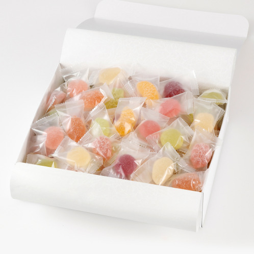 フルーツの香り豊かな味わいをお楽しみいただける、ひと口サイズのゼリー「さわやか果実の宝箱」を、国産果汁に限定した10種セットにしてご紹介します。フルーツ果汁とピューレを凝縮させ、果実のジューシー感が伝わる食感や、果実の味わい・香りを感じられるよう贅沢に仕上げました。表面には細かい砂糖をちりばめており、甘みと酸味が一体となった味わいが魅力です。フルーツそれぞれをかたどったゼリーが、まるでフルーツバスケットのようにどっさりと詰め込まれているので、見た目にも楽しく、ご家族皆で楽しんでいただけます。1粒ずつ個包装になっているため、携帯にも便利で、外出の際も手軽に持って行けます。