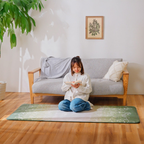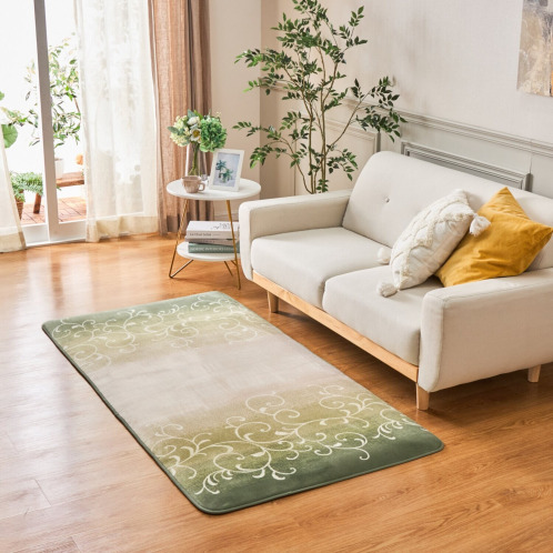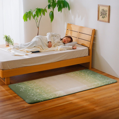 モスグリーンを基調とした上品な唐草アラベスク柄は洋室にも和室にもなじみます。目安サイズは江戸間換算で約1畳。