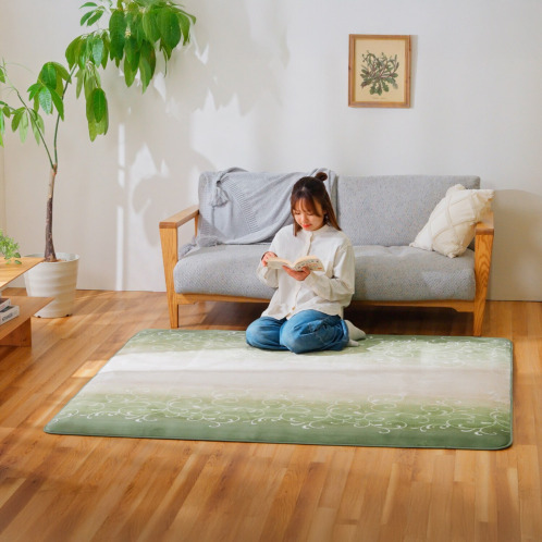 モスグリーンを基調とした上品な唐草アラベスク柄は洋室にも和室にもなじみます。目安サイズは江戸間換算で約2畳。