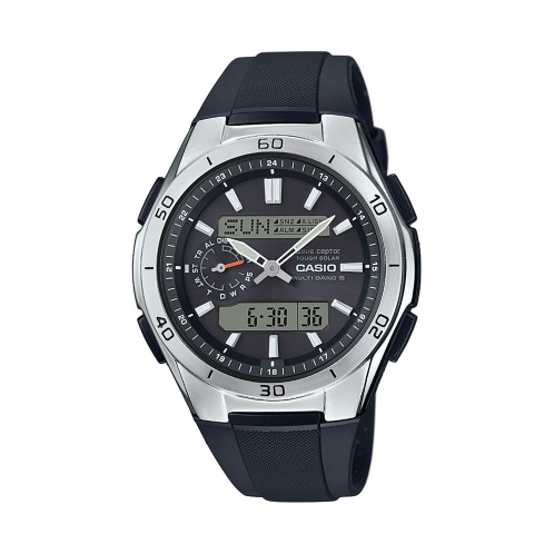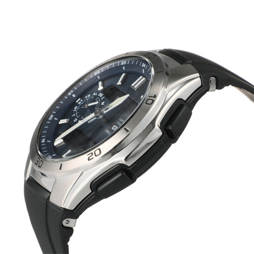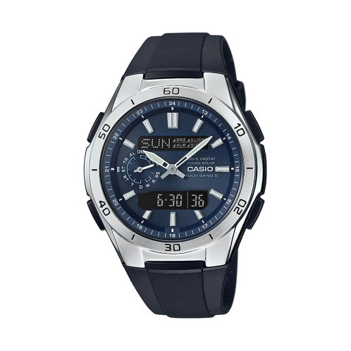 電波を受信し正確な時を刻むカシオのウェーブセプターから、ファッション性と機能性を兼ね備えた樹脂バンドモデルをご紹介致します。タフソーラーを搭載しているので、太陽光だけでなく、室内の蛍光灯の光でも充電できるため、電池交換の手間を軽減。ワールドタイム、カレンダー、時刻アラームなどの情報をわかりやすく上下の液晶画面に表示してくれます。9時位置の小針が現在のモードを示してくれるため、操作もアシスト。樹脂バンドを採用しているため、購入後すぐにサイズ調整なしで着用可能です。ストップウォッチやタイマー機能も搭載。日常での水仕事をはじめ、水泳やシュノーケリング、ヨットなどマリンスポーツでも使用可能な10気圧防水です。日本製ムーブメント搭載。日々の暮らしからビジネス、旅行まで、多彩なシーンで頼りになる腕時計は、ご自分用にはもちろん、男性へのプレゼントにも喜ばれそう。