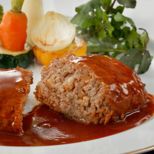 <大地のハンバーグ(根菜のデミグラスソース)>