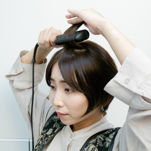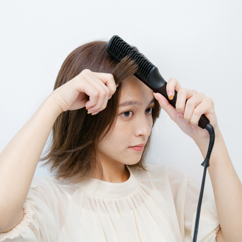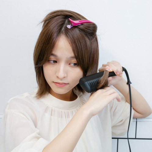 コーム自体が発熱する”ヒーティングコーム”を搭載したクシ型ヘアアイロン。髪を梳かすように使うことで、根元からしっかりと立ち上げて、ふんわりとしたボリューム感のあるヘアスタイルに仕上げます。