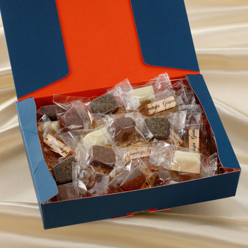 ヘーゼルナッツのジャンドゥーヤをミルクチョコレートでコーティング。伝統的な味のチョコレートをフォイルで包装しました。