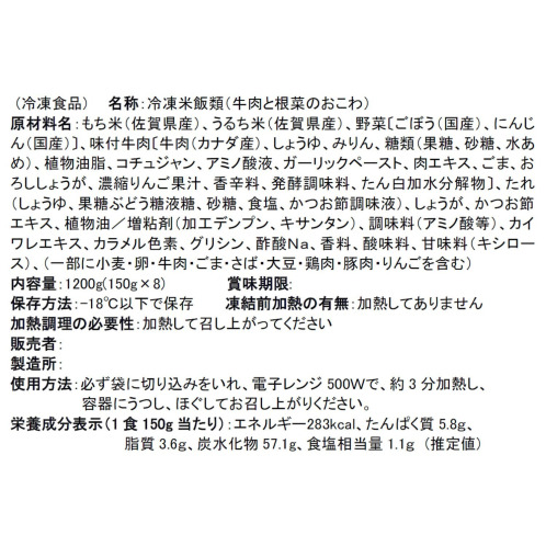 ・牛肉と根菜のおこわ150g×8